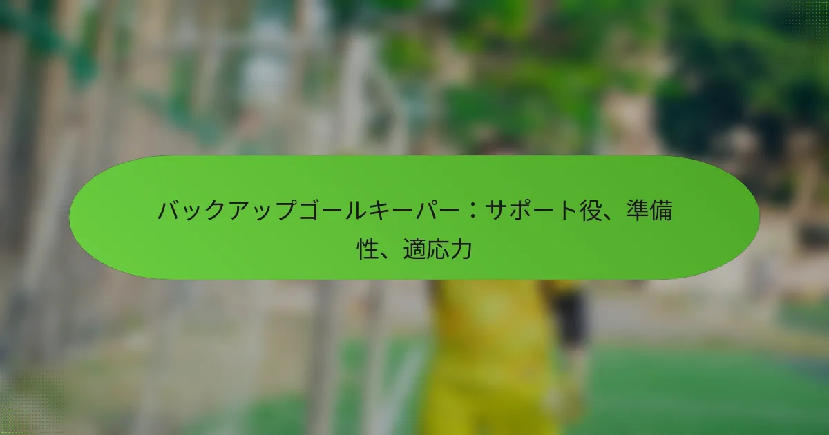 バックアップゴールキーパーはサッカーチームにおいて重要なサポート役割を果たし、主に先発ゴールキーパーの代替として機能します。このポジションは、いつでも出場できる準備と、さまざまな試合状況やチームのダイナミクスに適応する能力が求められます。